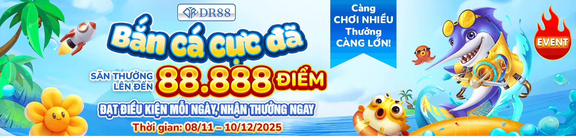 Nhà cái DR88 liên tục cập nhật hơn 20 chương trình khuyến mãi mỗi tháng với tổng giá trị giải thưởng vượt 50 tỷ đồng. Từ hoàn tiền thể thao 0,8% không giới hạn đến giải đấu slot hàng tuần với phần thưởng lên đến 500 triệu đồng, mọi thành viên đều có cơ hội nhận thưởng bất cứ lúc nào.